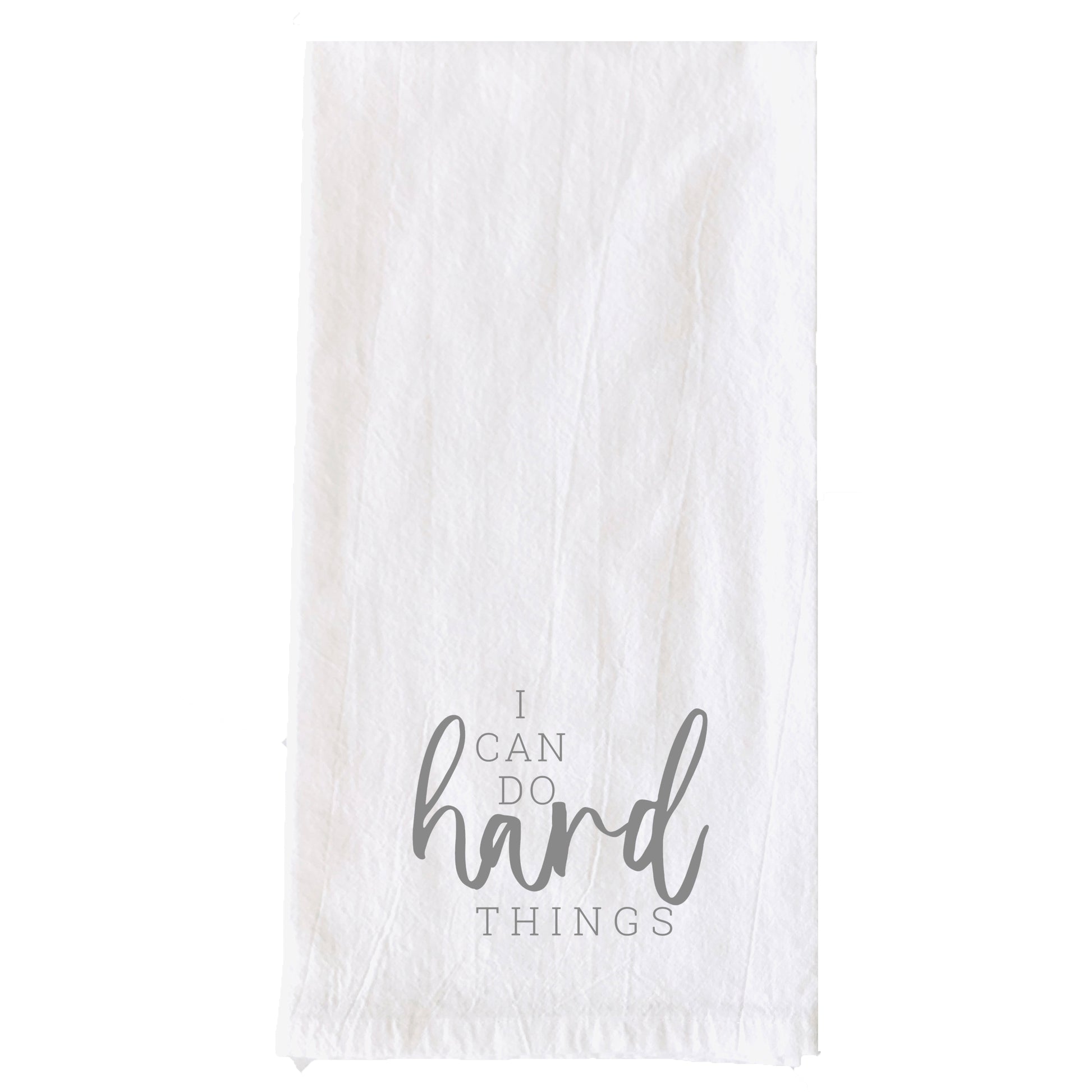 White Tea Towels with Gray I CAN DO HARD THINGS script.