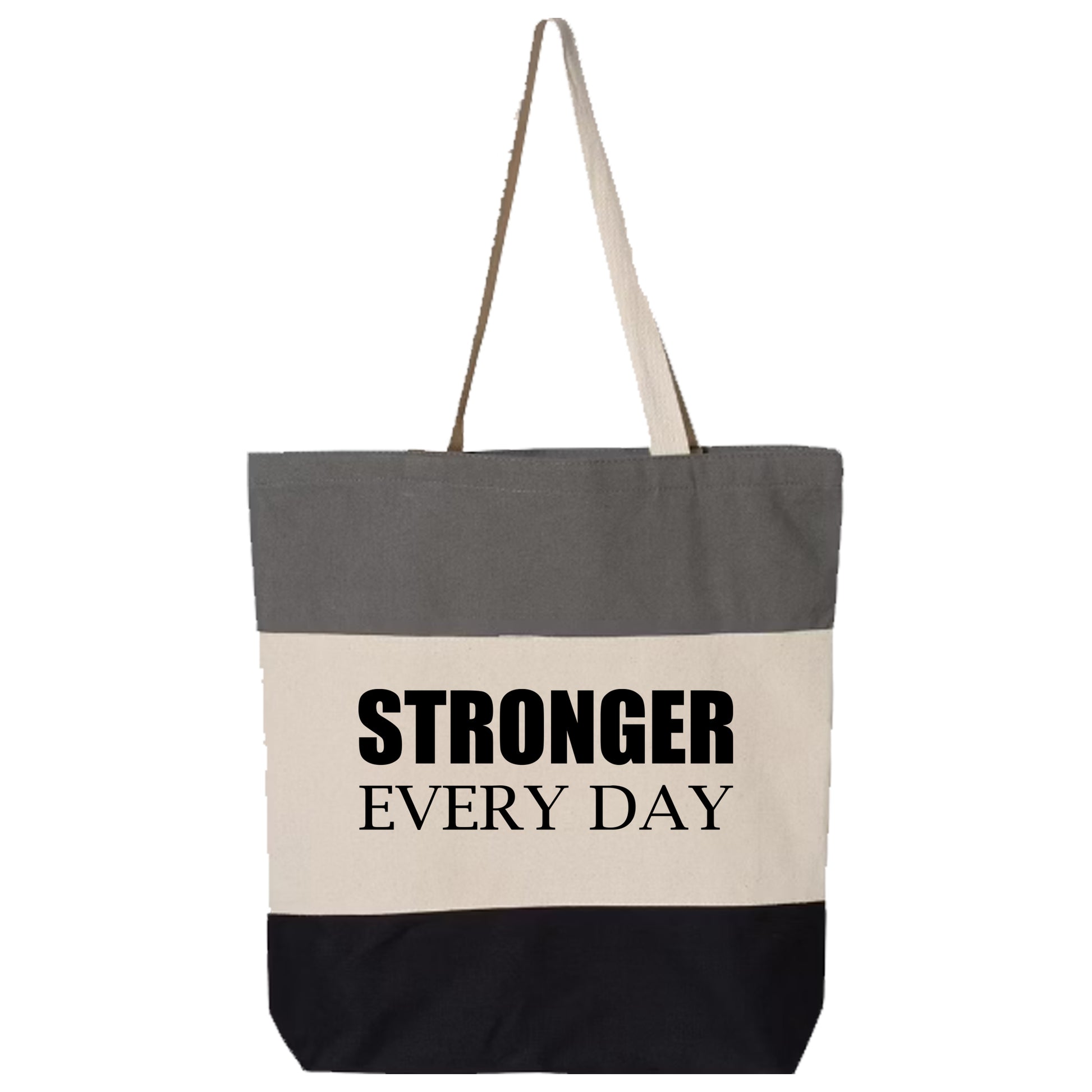 Written in the same font used in my other STRONGER EVERY DAY (Block) merchandise, these canvas totes make for the perfect catch all without being too bulky.
